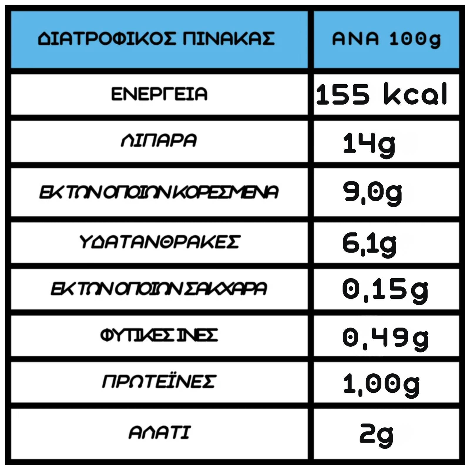 • Keto & Vegan Friendly: Η απόλυτη επιλογή για όσους ακολουθούν κετογονική διατροφή ή vegan τρόπο ζωής.